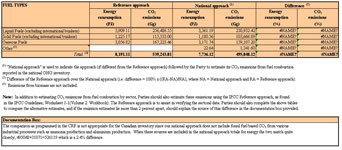For the purposes of comparing apparent energy consumption from the Reference approach with energy consumption from the Sectoral approach, a column is included in this table with the energy content corresponding to the fuel quantities used as feedstocks and/or for non-energy purposes subtracted from apparent consumption. Because most of the carbon in feedstocks and non-energy use fuels will not be emitted (or the emissions will be accounted for in the Industrial Processes sector), subtracting it from apparent consumption gives a more accurate basis for comparison.