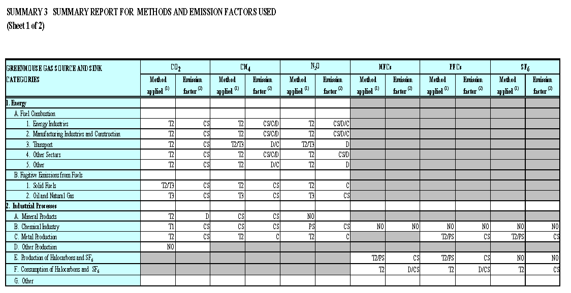 Summary 3 Summary Report for Methods and Emission Factors Used